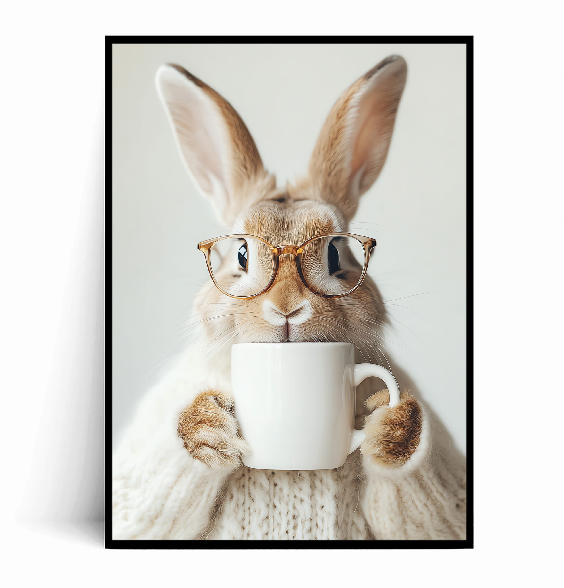 Plakat KRÓLIK W SWETRZE Z KUBKIEM Boho