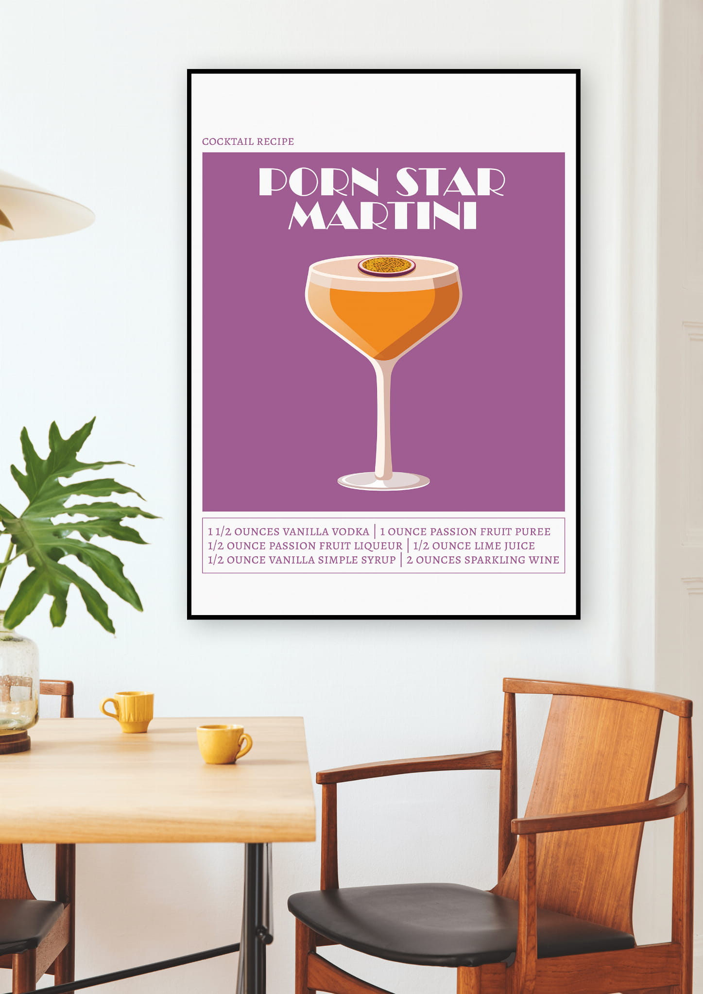 Wprowadź do swojego wnętrza odrobinę luksusu i egzotycznego blasku z naszym plakatem PORNSTAR MARTINI!