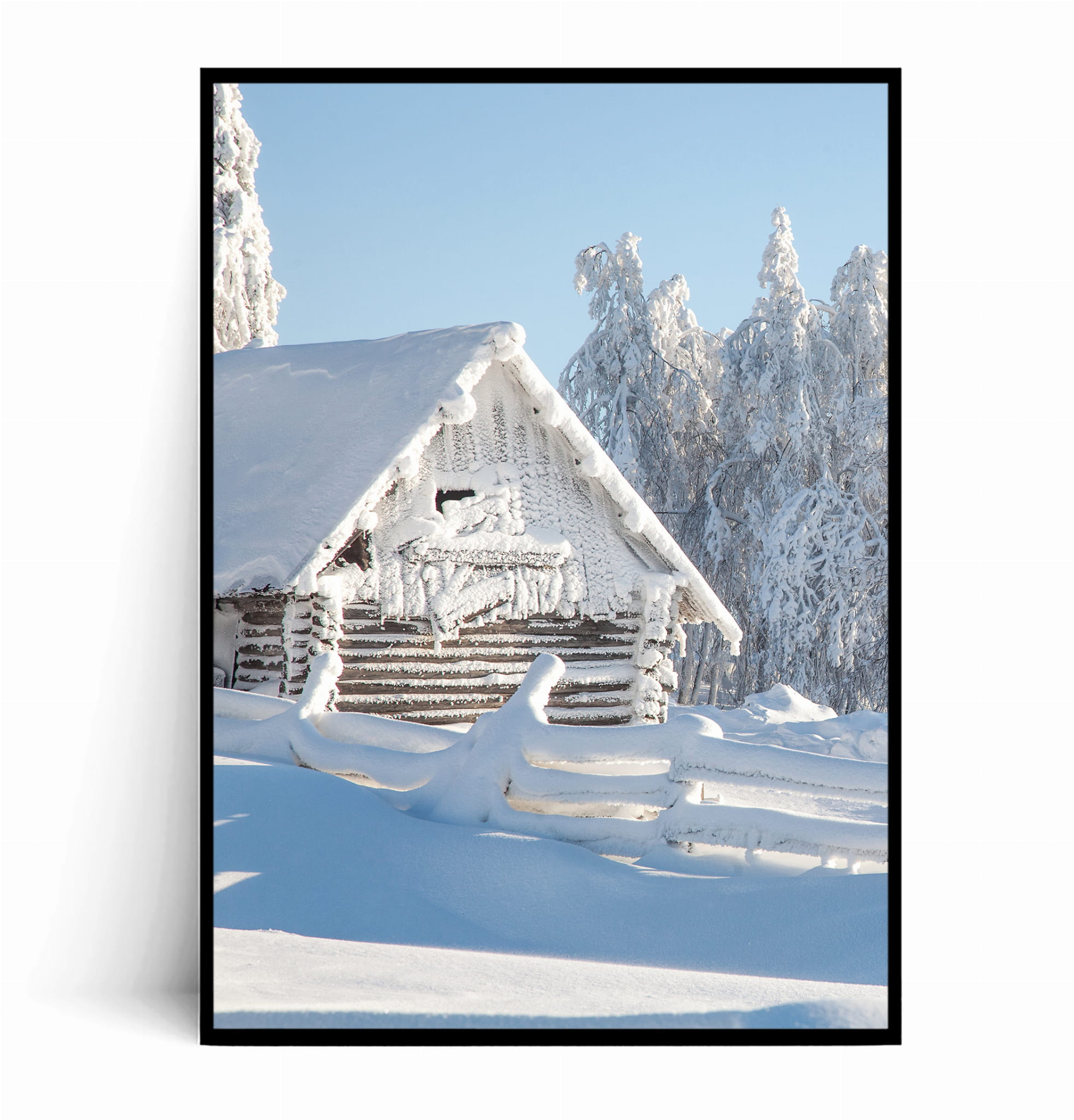 Plakat ZIMOWA DREWNIANA CHATKA W ŚNIEGU