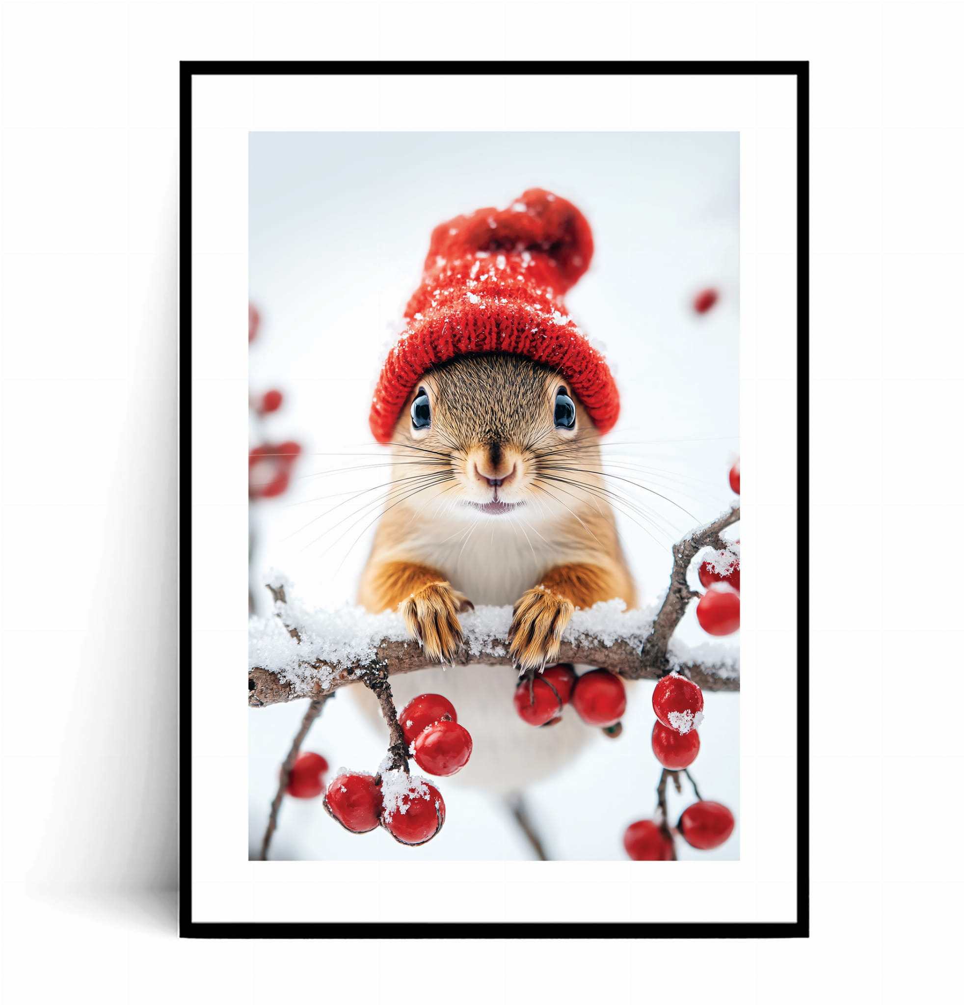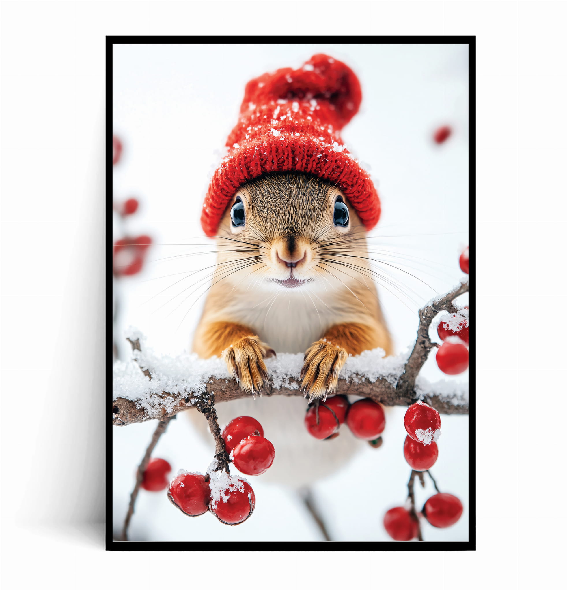 Plakat ZIMOWA WIEWIÓRKA W CZERWONEJ CZAPCE