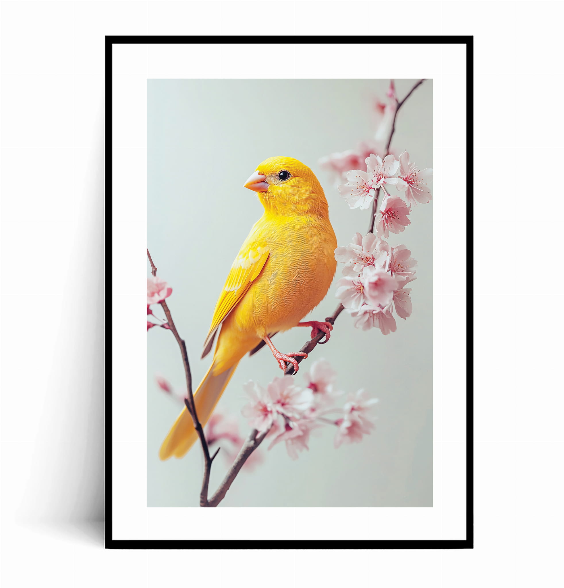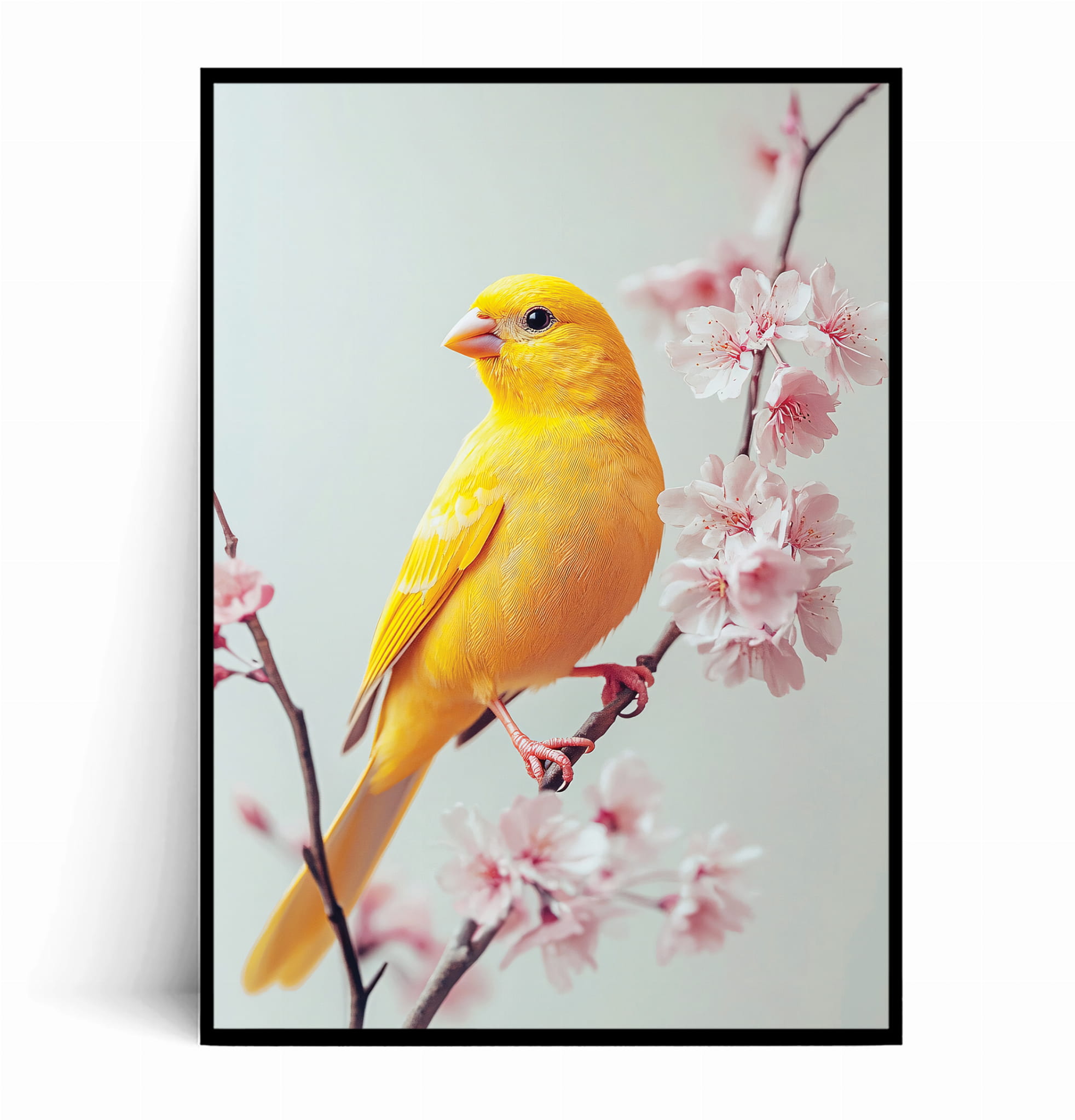 Plakat ŻÓŁTY PTAK NA GAŁĄZCE WIŚNI